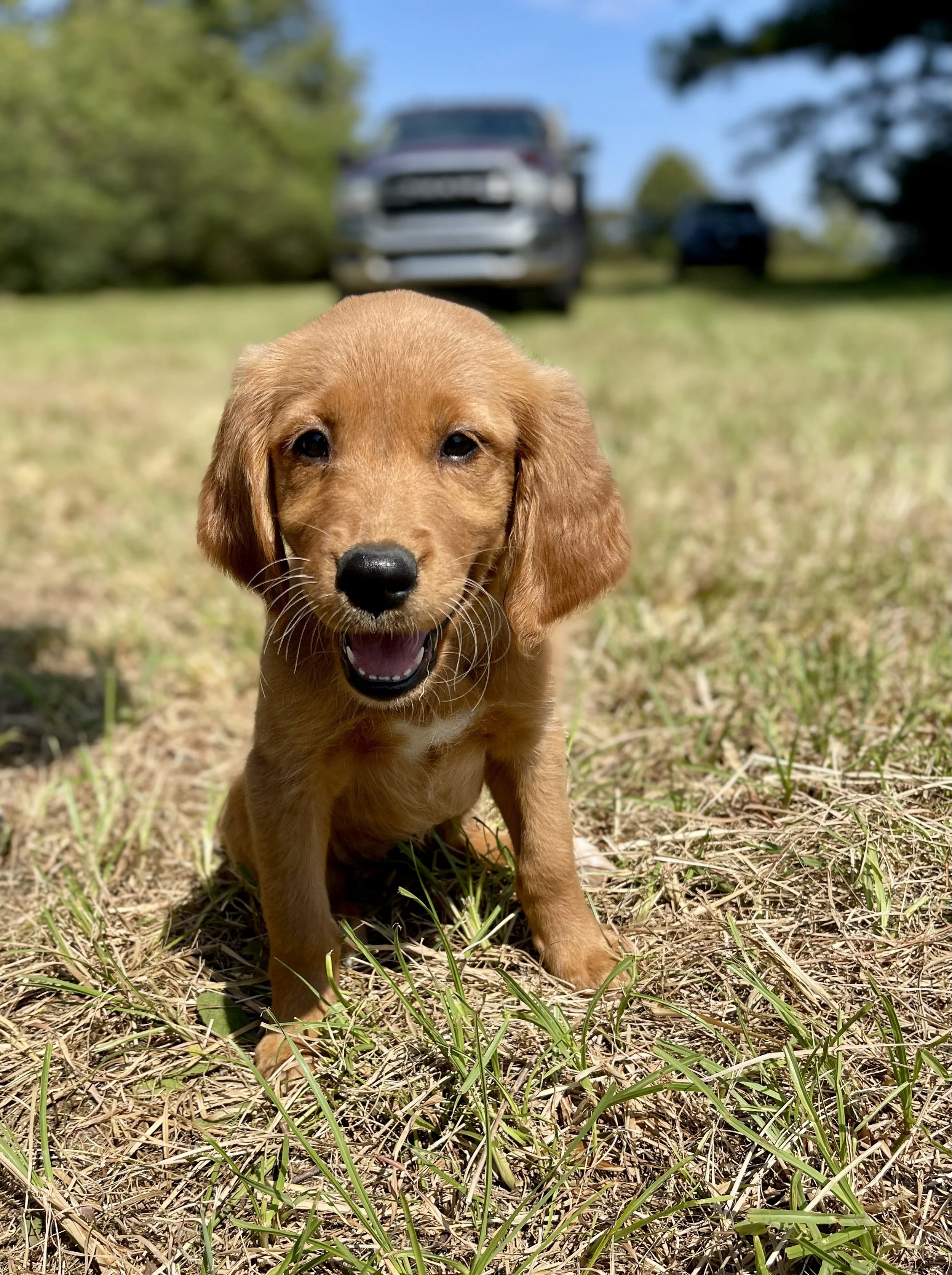This darling golden girl is as sweet as she is cute. We promise to get a better picture asap but she currently wants to be exactly where you are… phone be darned.